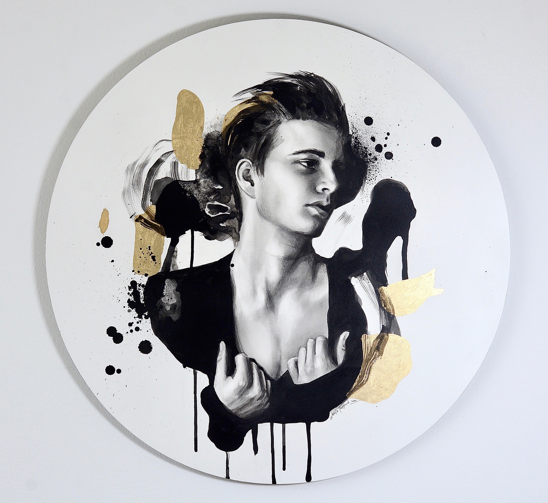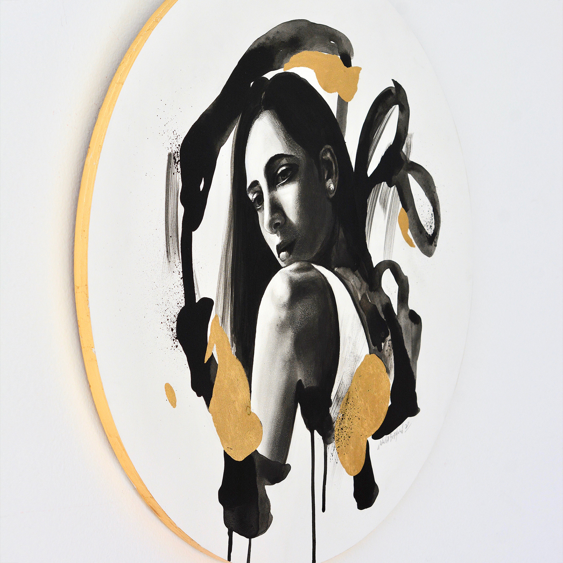 20″ – Graphite, ink, gold leaf on panelAvailable – inquire about pricing
