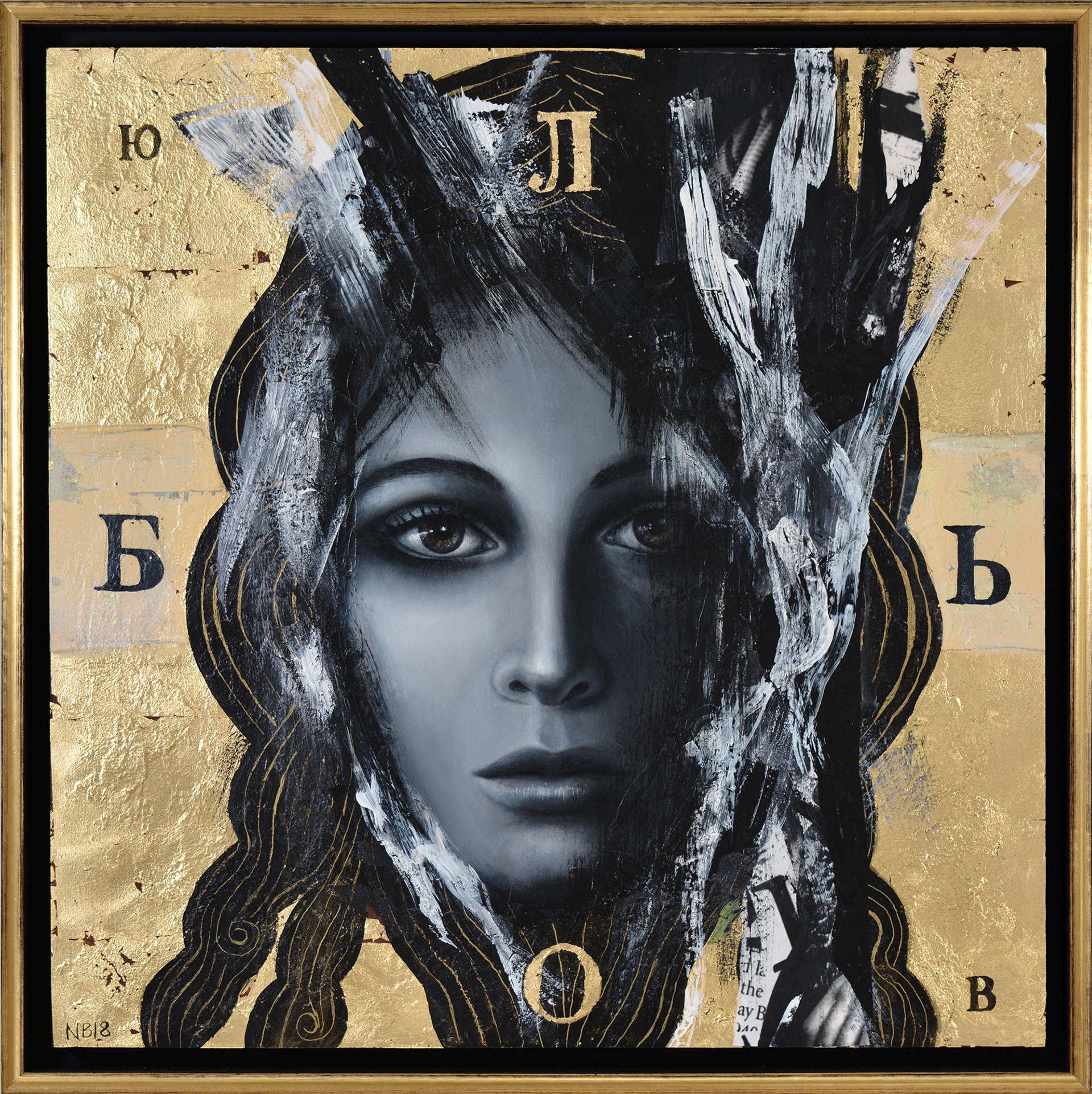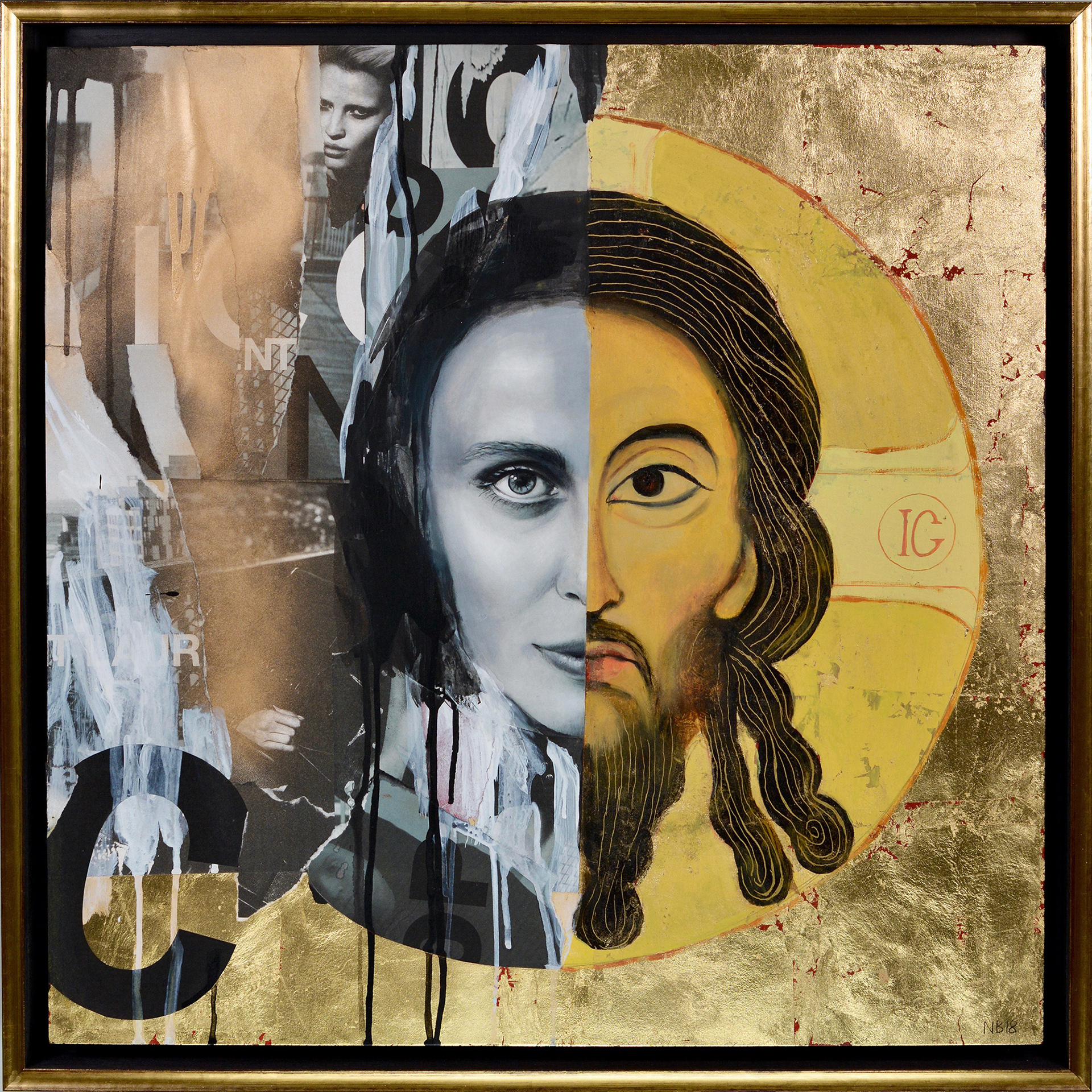 Love – 24×24″, oil, acrylic, collage, gold leaf on wood panelPrivate collection