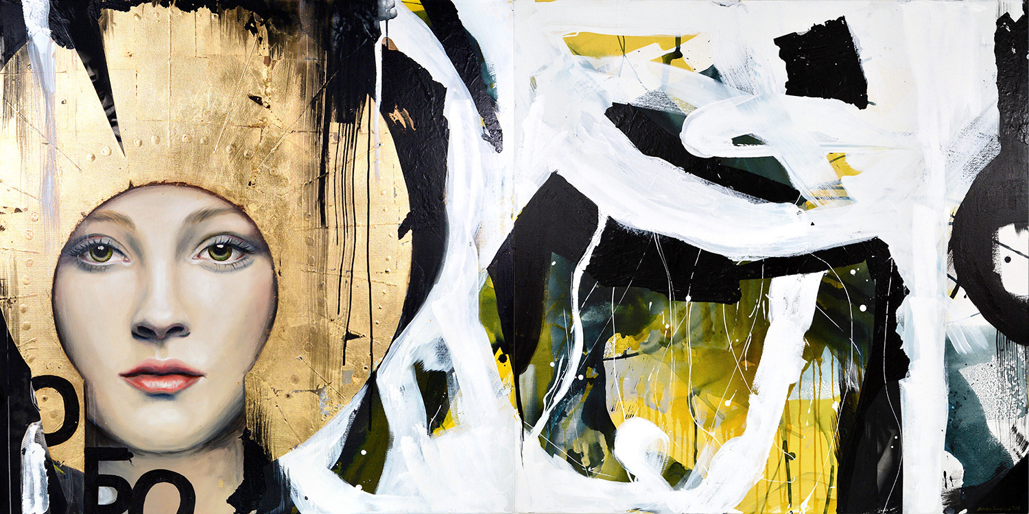Observer – 40×80″, oil, acrylic, gold leaf on canvasPrivate collection
