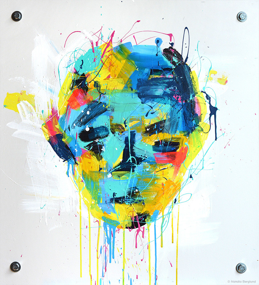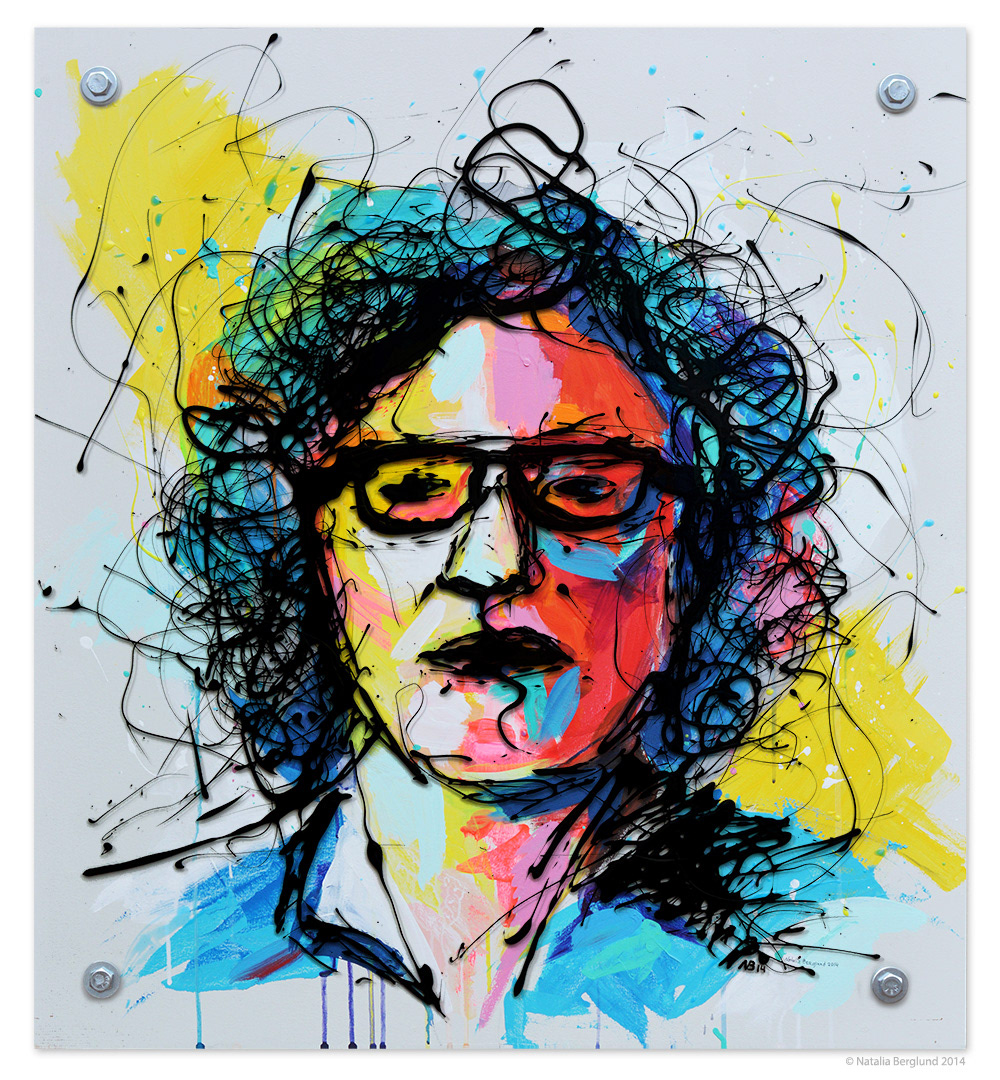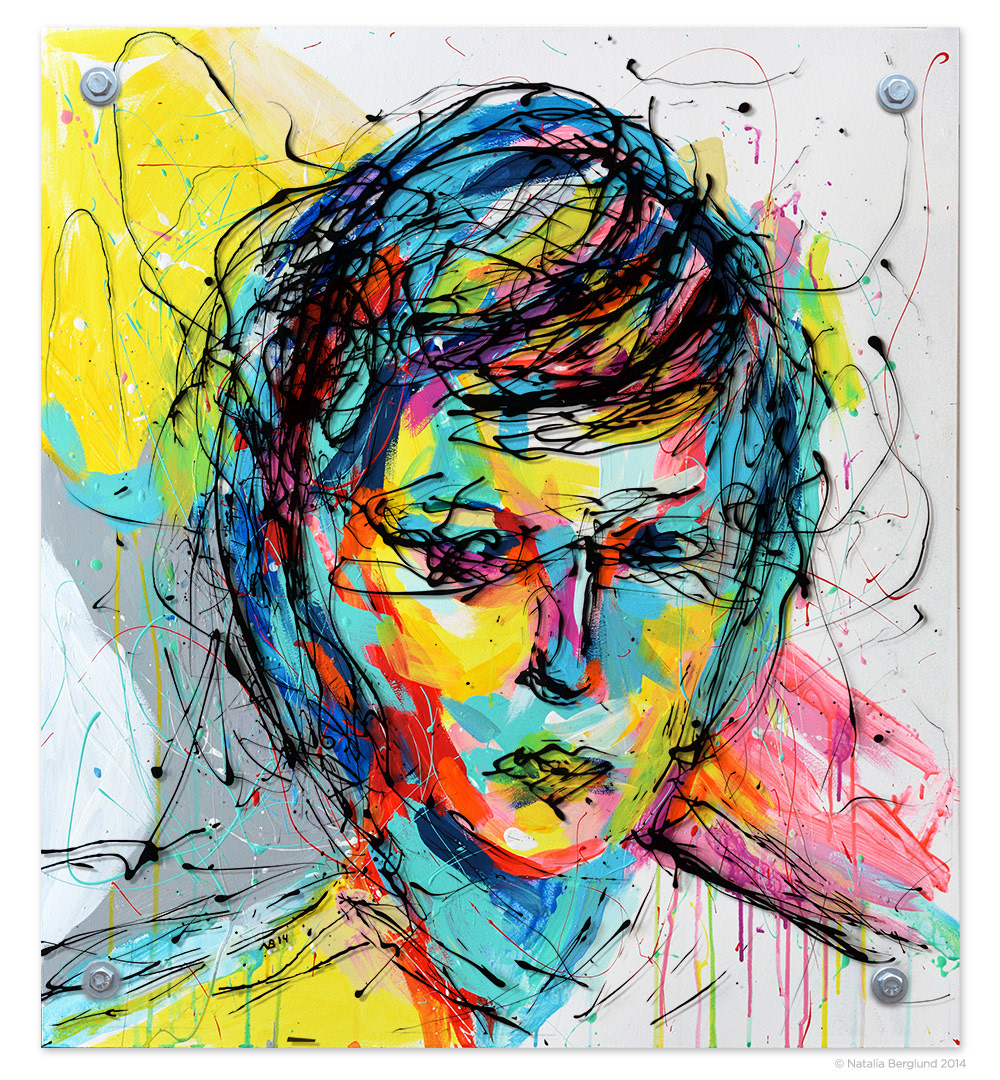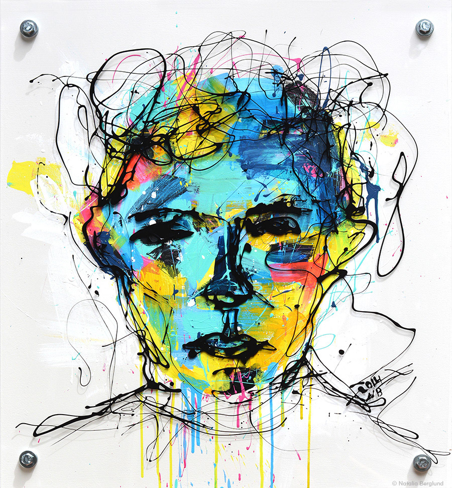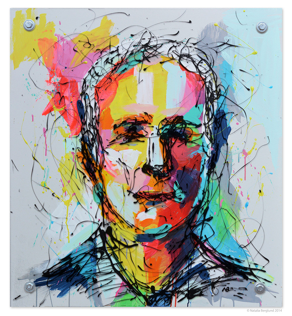 34×31″ abstract portraits on panel with plexiglass overlay suspended 1/2″ away from the board.