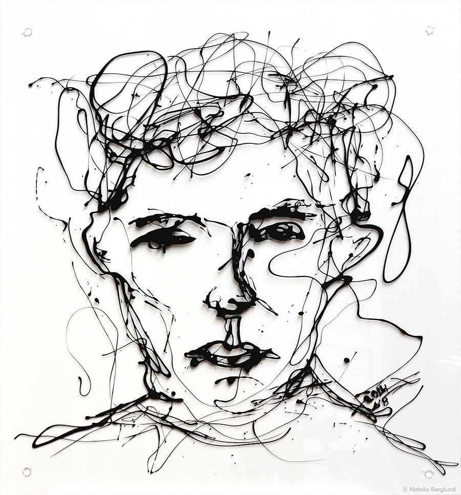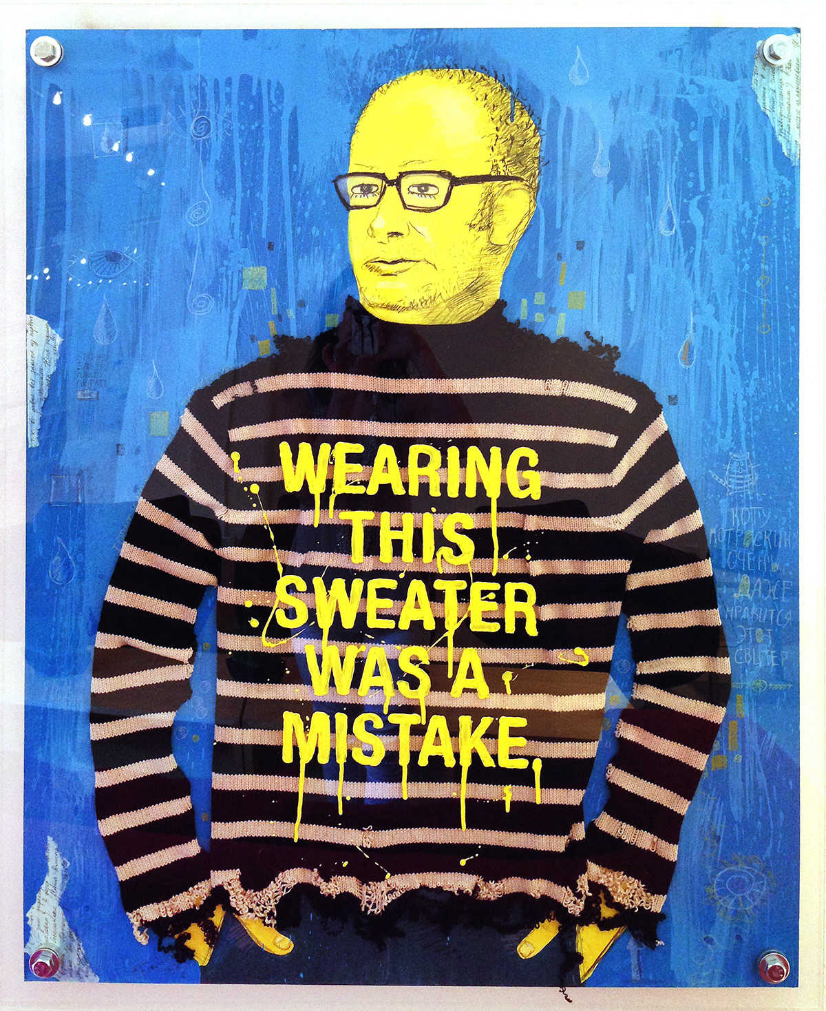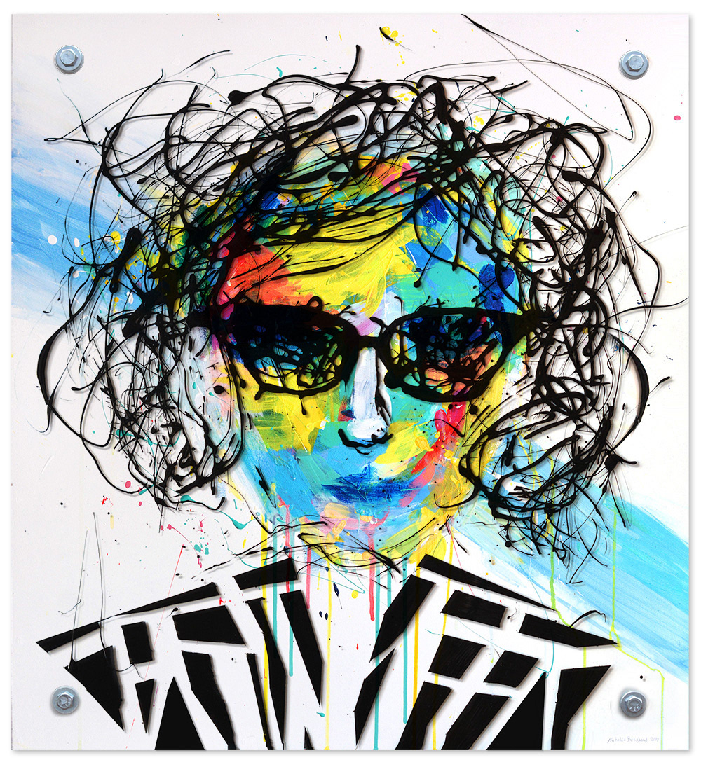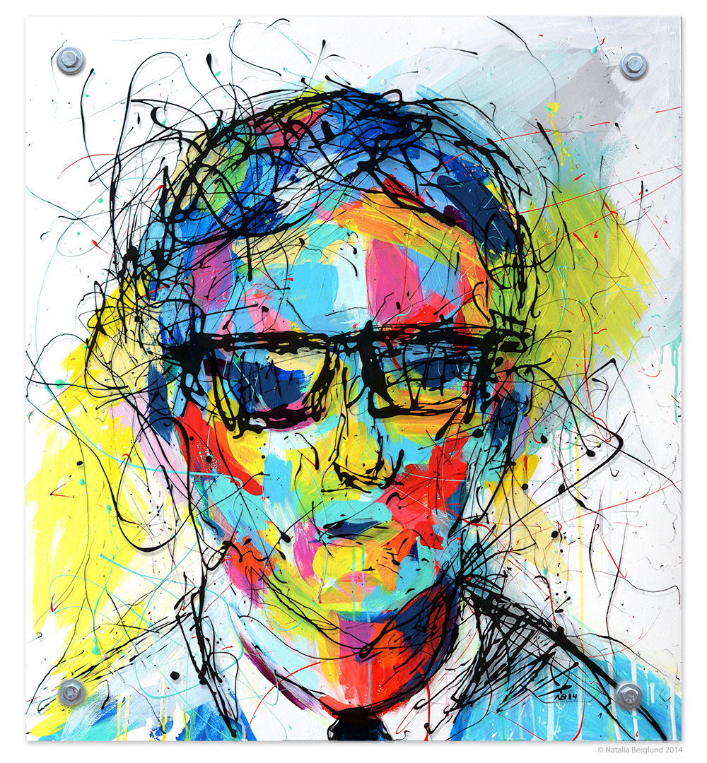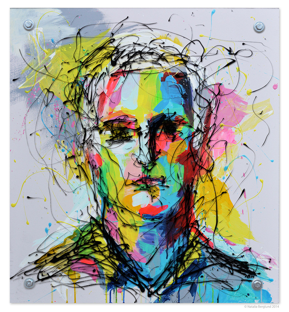 34×31″ abstract portraits on panel with plexiglass overlay suspended 1/2″ away from the board.
